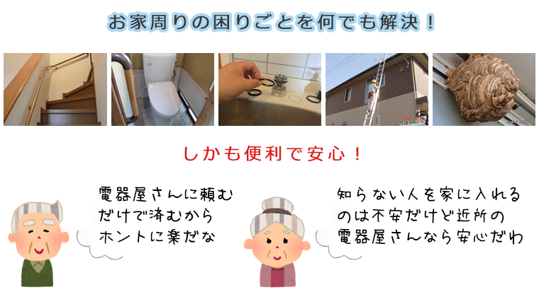 『まちのでんきや』では町内密着の御用聞きのノウハウを活かし、こんなサポートをやっています!