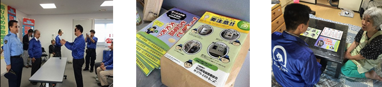 石川県電器商業組合では県警や業界団体などと連携し、各組合店舗が高齢者世帯のお客様宅に訪問しての注意喚起や電化製品の安全点検などの巡回活動を行っています。